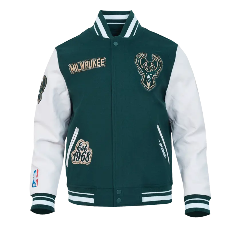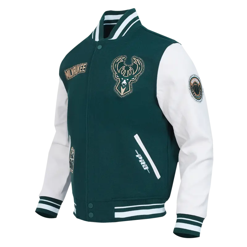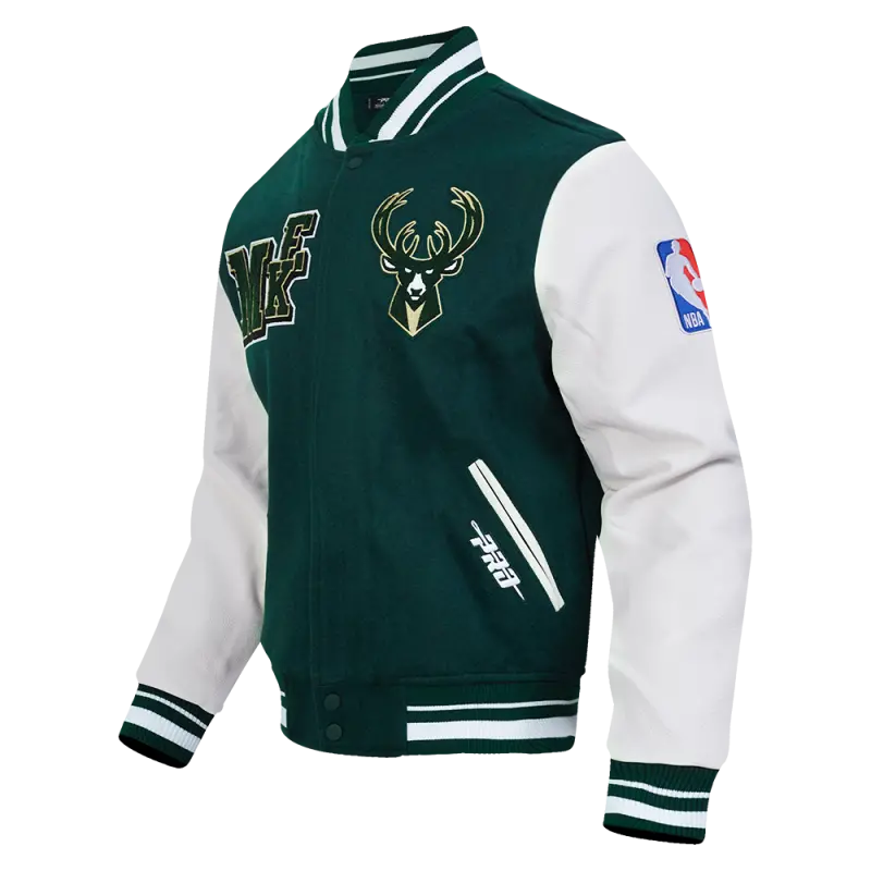 NBA MILWAUKEE BUCKS BEST OF MEN’S RIB WOOL VARSITY JACKET (FOREST GREEN\/WHITE)