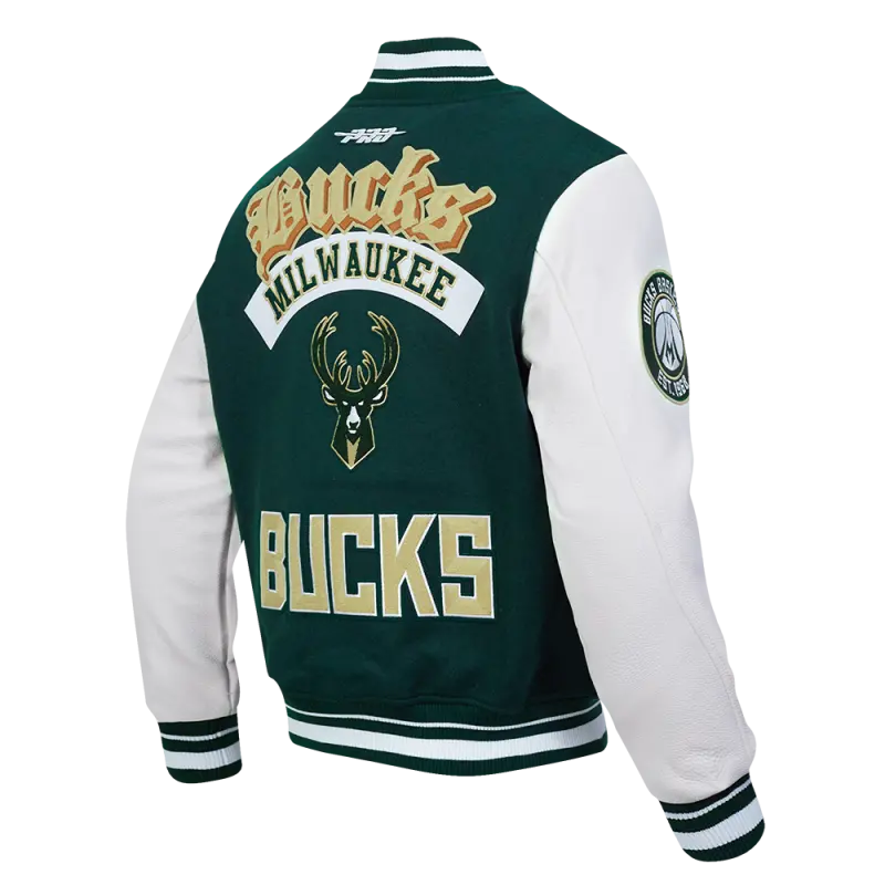 NBA MILWAUKEE BUCKS MASHUP MEN’S RIB WOOL VARSITY JACKET (BLACK)