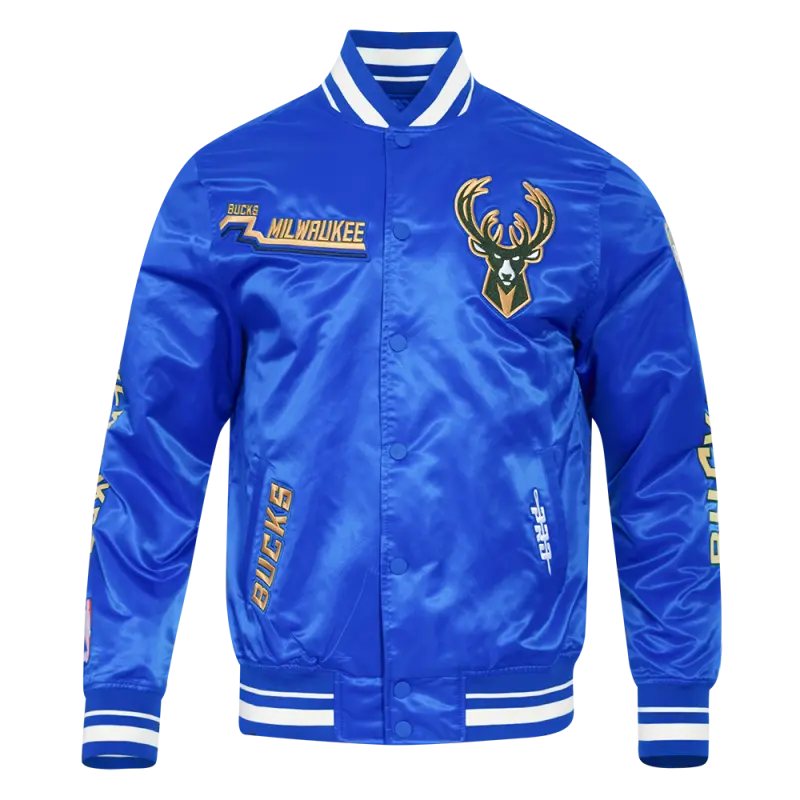NBA MILWAUKEE BUCKS CITY EDITION 24-25 MEN’S RIB SATIN JACKET (ROYAL BLUE)