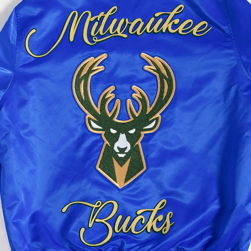 NBA MILWAUKEE BUCKS BIG LOGO MEN’S SATIN JACKET (FOR)