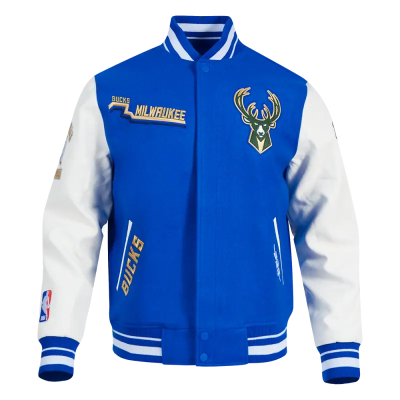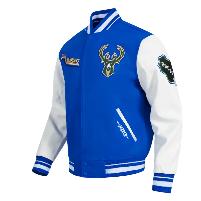NBA MILWAUKEE BUCKS CITY EDITION 24-25 MEN’S RIB WOOL VARSITY JACKET (ROYAL BLUE\/WHITE)