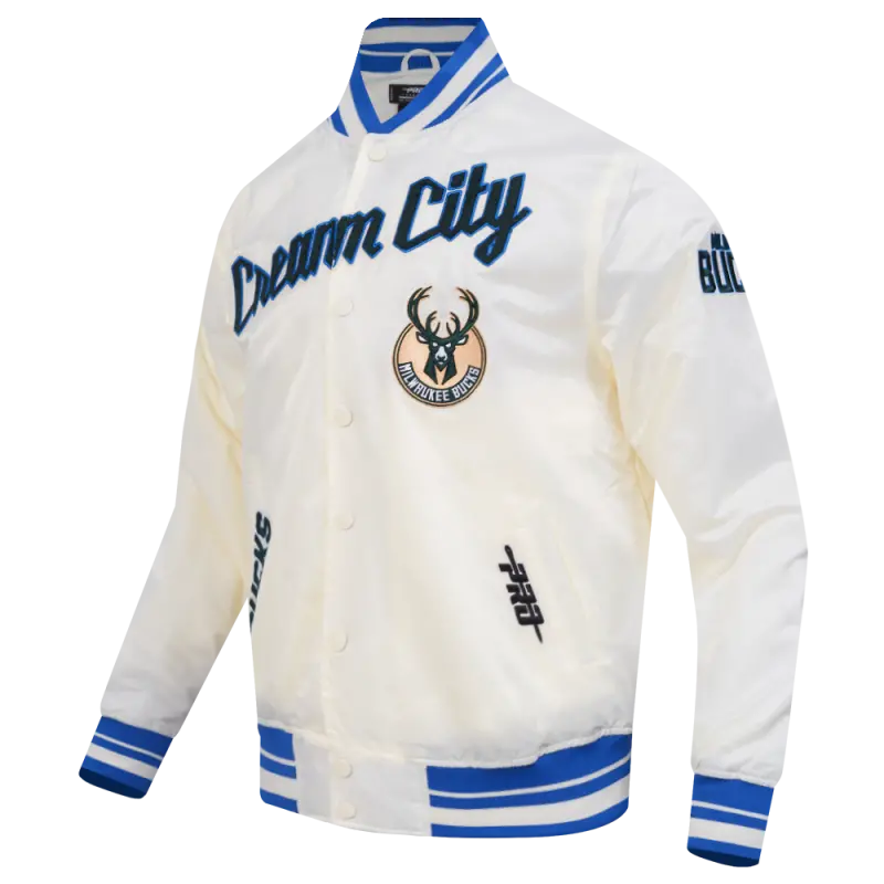 NBA MILWAUKEE BUCKS CITY EDITION 25-26 MEN’S PRO SATIN YD RIB JACKET (EGGSHELL\/ ROYAL BLUE)