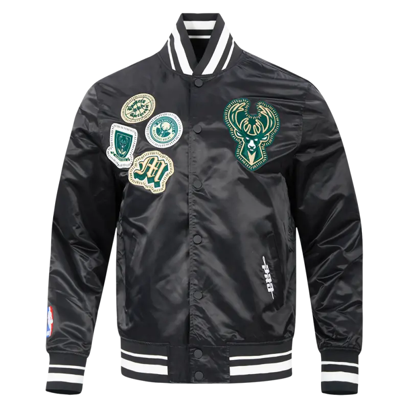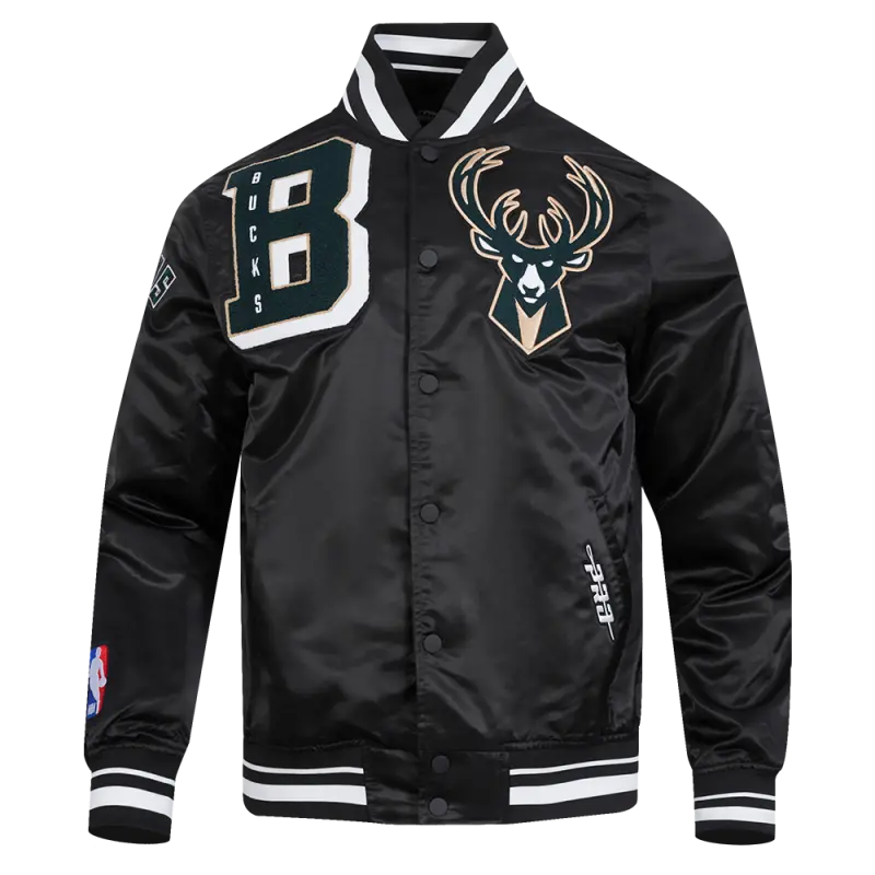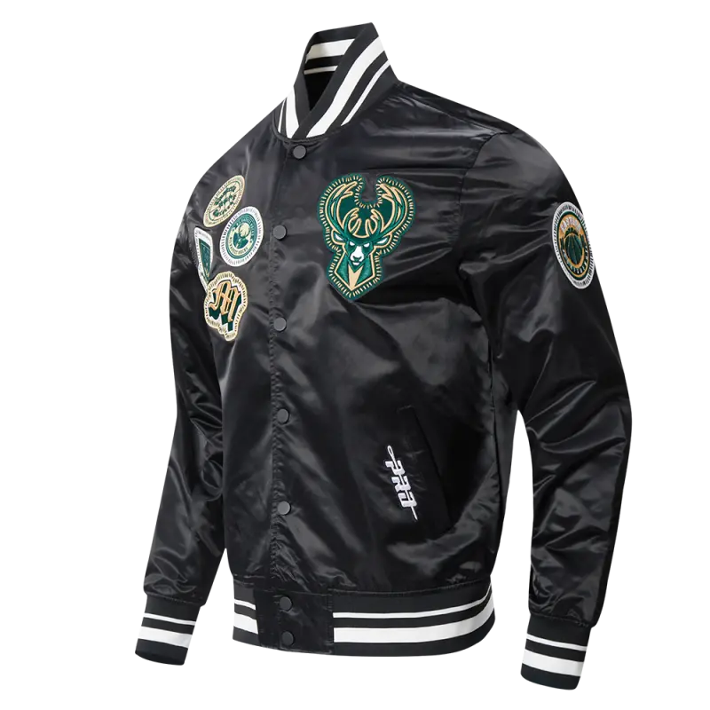 NBA MILWAUKEE BUCKS MASHUP MEN’S RIB SATIN JACKET (BLACK)