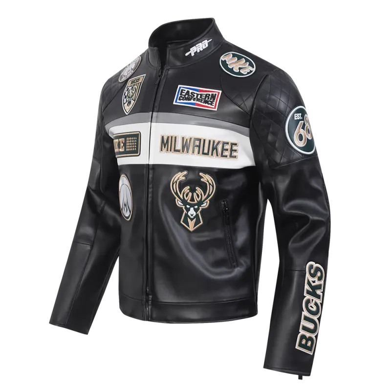 NBA MILWAUKEE BUCKS MEN’S MOTO JACKET (BLACK\/WHITE)