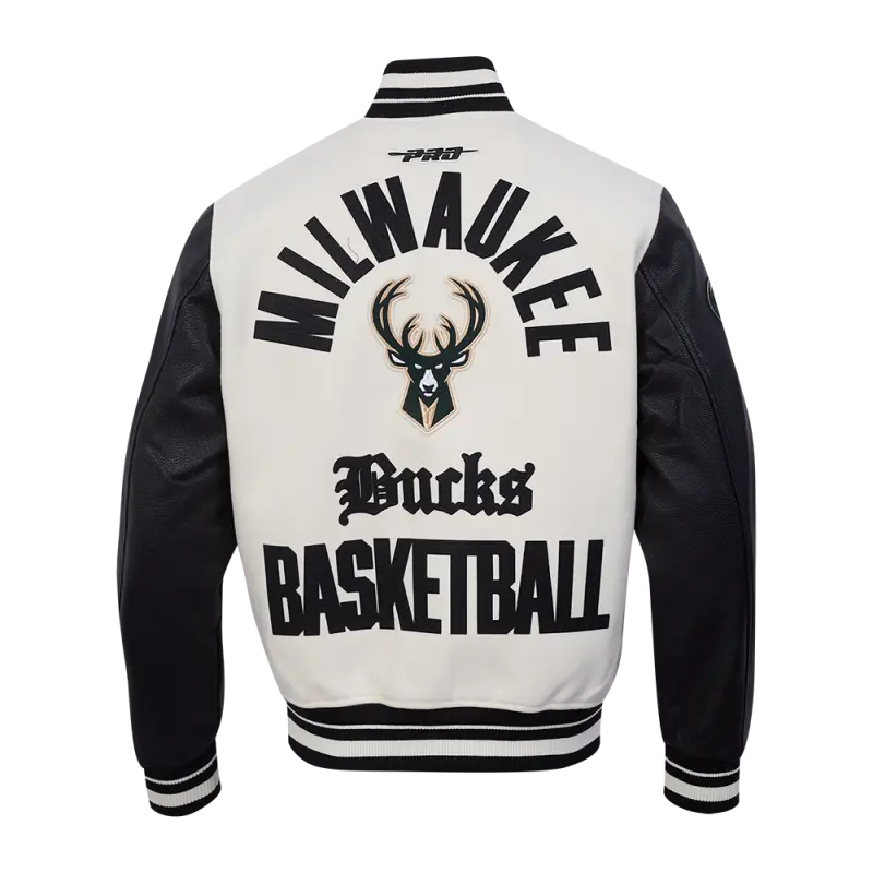 NBA MILWAUKEE BUCKS MODERN ORIGINALS MEN’S RIB WOOL VARSITY JACKET (EGGSHELL\/ BLACK)