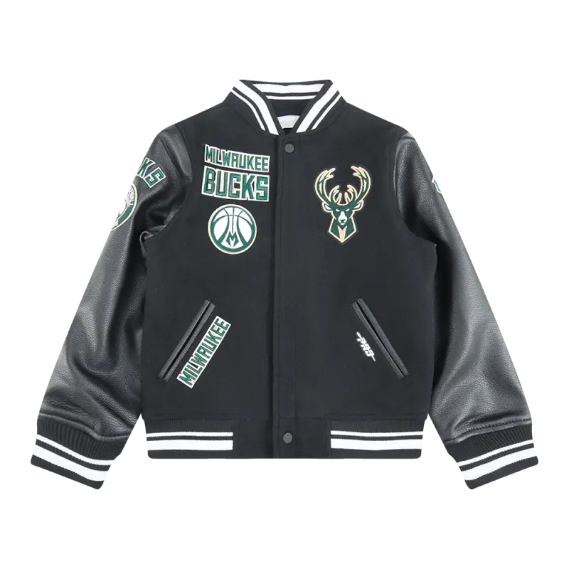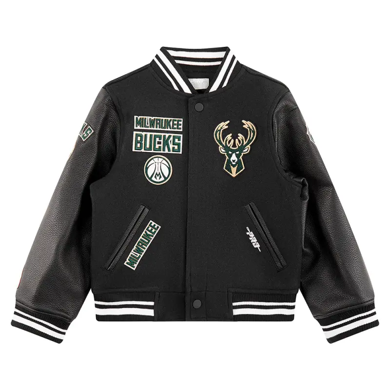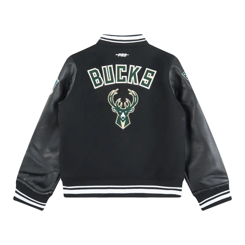 NBA MILWAUKEE BUCKS RETRO CLASSIC BIG BOYS RIB WOOL VARSITY JACKET (BLACK)
