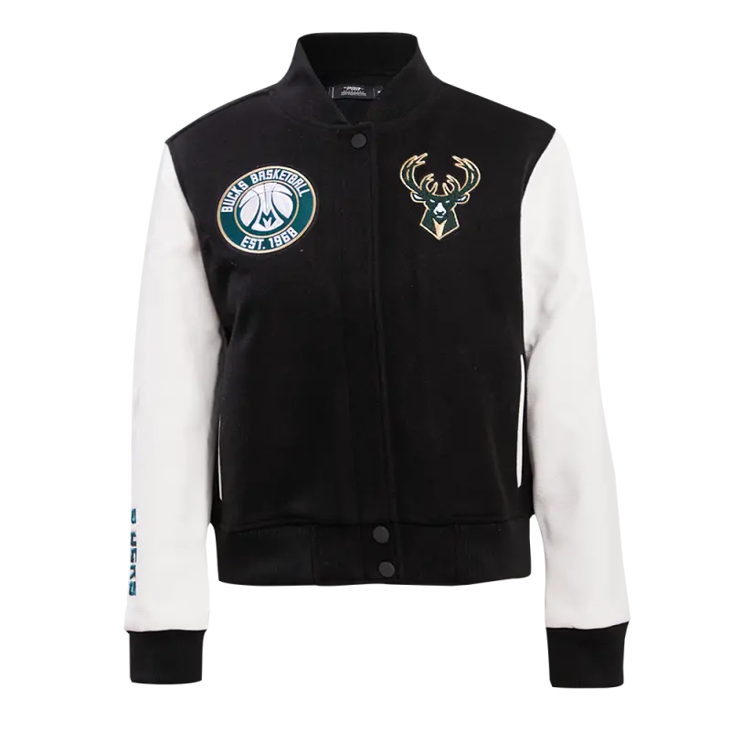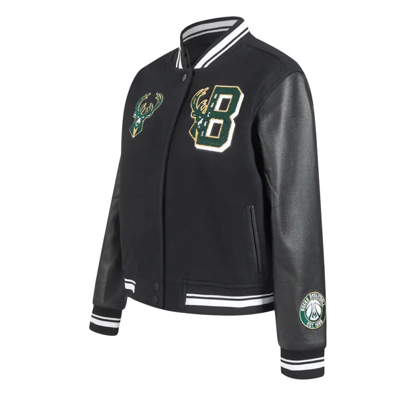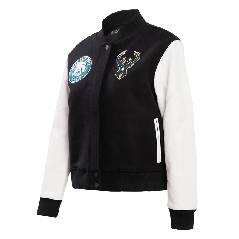 NBA MILWAUKEE BUCKS MASHUP WOMEN’S RIB WOOL VARSITY JACKET (BLACK)