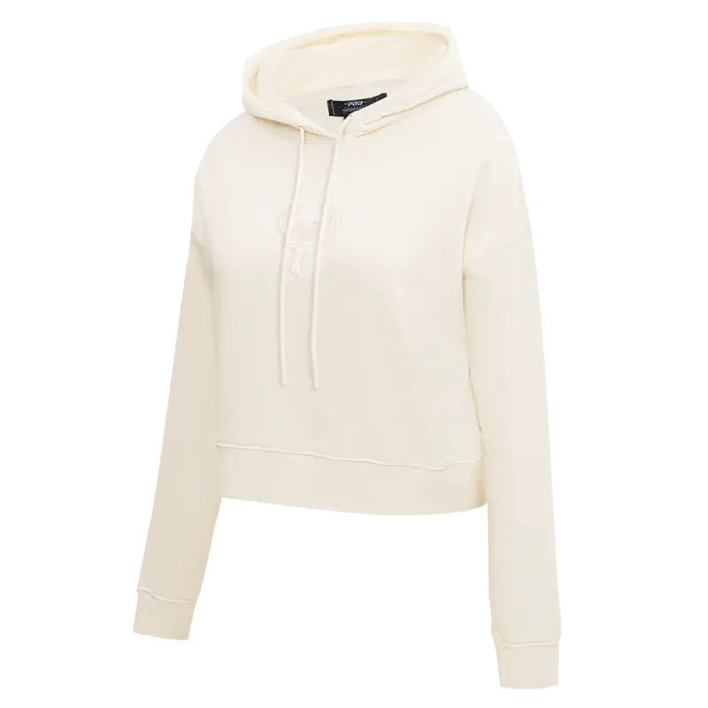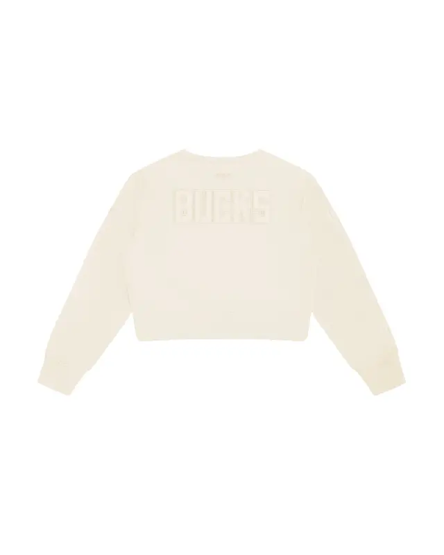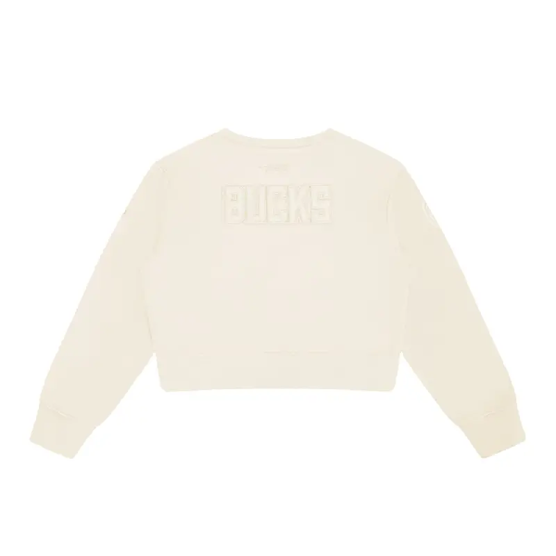 NBA MILWAUKEE BUCKS NEUTRAL WOMEN’S CROPPED PULLOVER HOODIE (EGGSHELL)