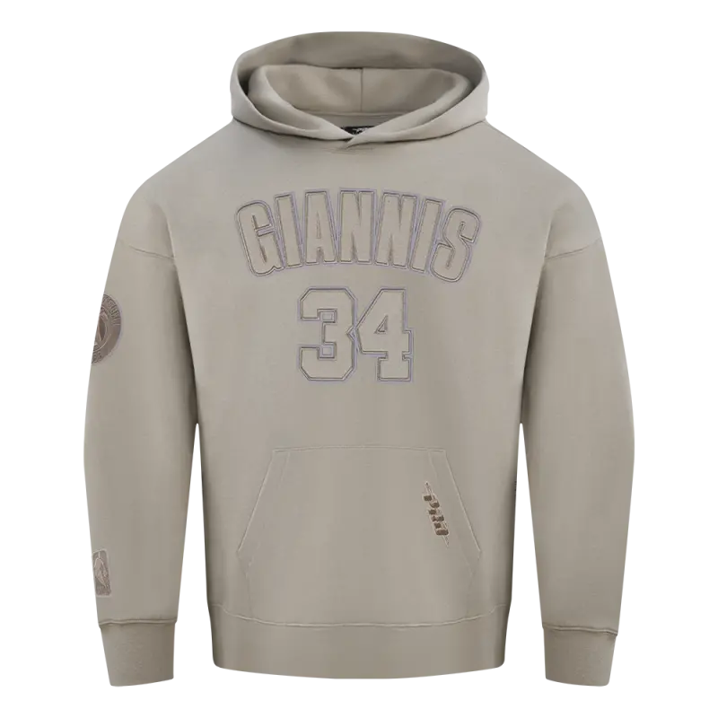 NBA MILWAUKEE BUCKS GIANNIS ANTETOKOUNMPO #34 NEUTRAL PNN MEN’S DROP SHOULDER FLC CREWNECK (TAUPE)