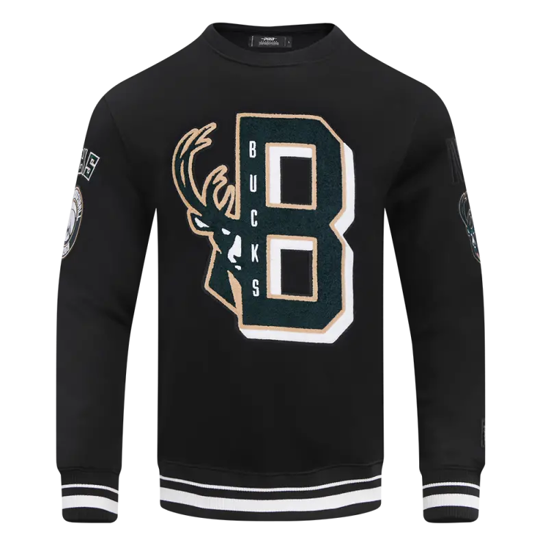 NBA MILWAUKEE BUCKS MASHUP MEN’S RIB CREWNECK (BLACK)