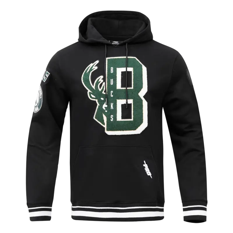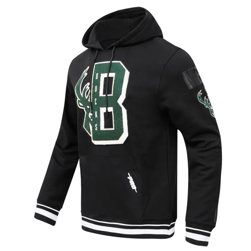 NBA MILWAUKEE BUCKS MASHUP MEN’S RIB PO HOODIE (BLACK)