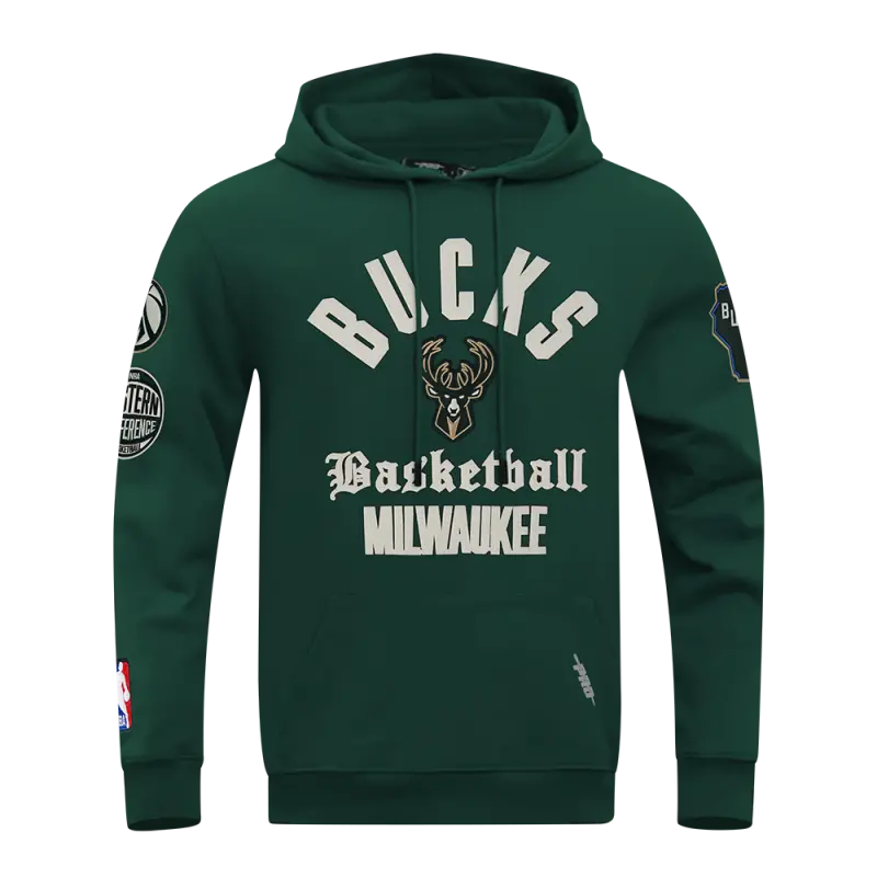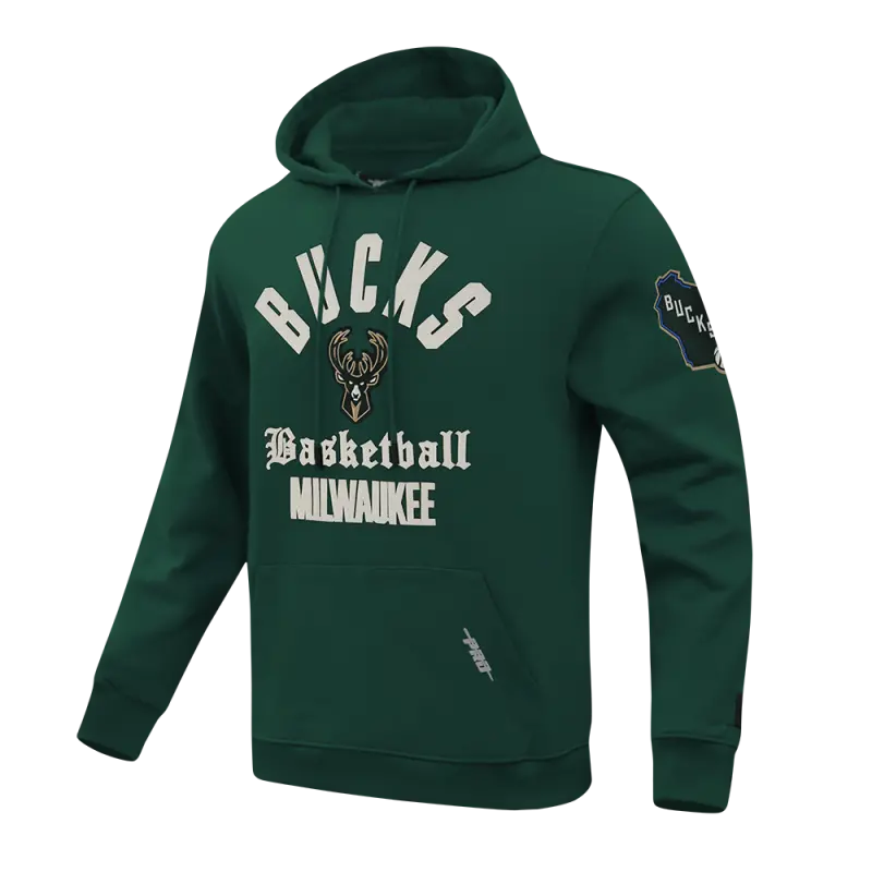 NBA MILWAUKEE BUCKS MODERN ORIGINALS MEN’S FLC PO HOODIE (FOREST GREEN)