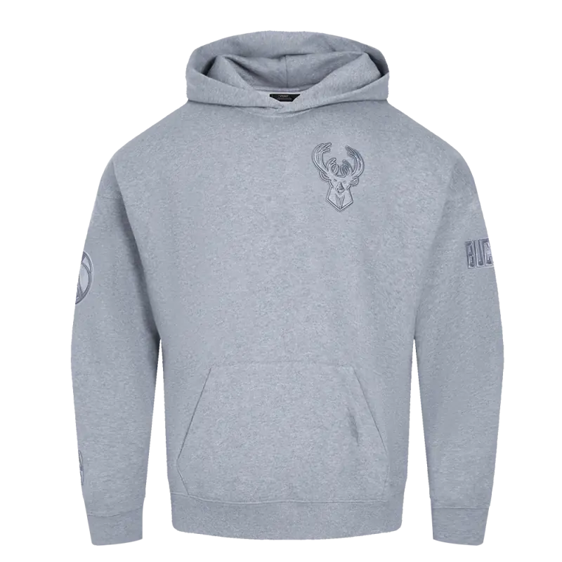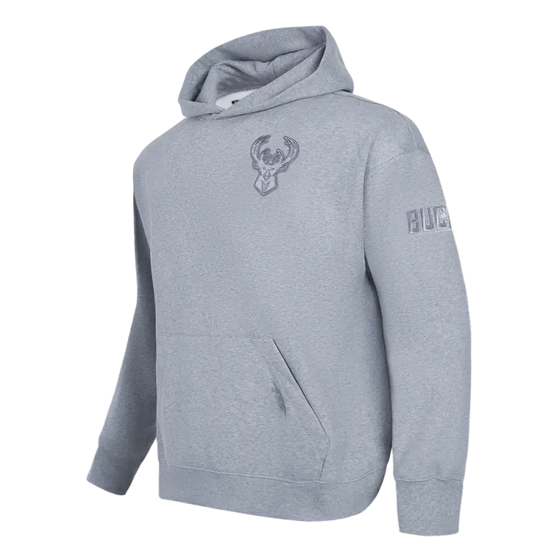 NBA MILWAUKEE BUCKS NEUTRAL MEN’S DROP SHOULDER PULLOVER HOODIE (DARK HEATHER GRAY)