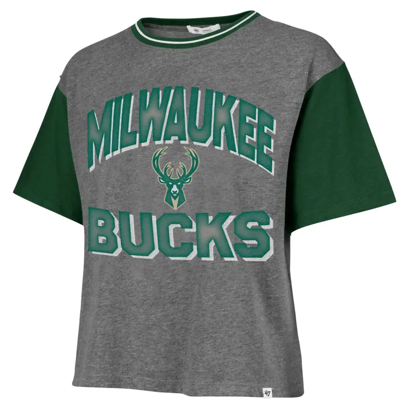 Women’s Milwaukee Bucks ’47 Gray Rise Clubhouse Ziggy Color Block T-Shirt