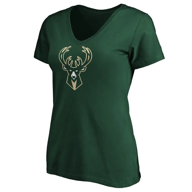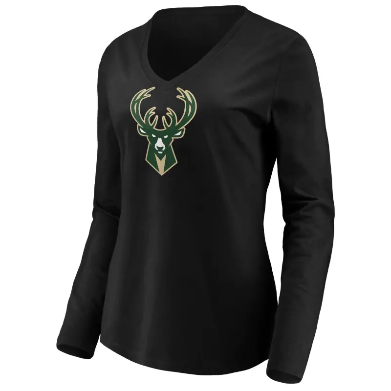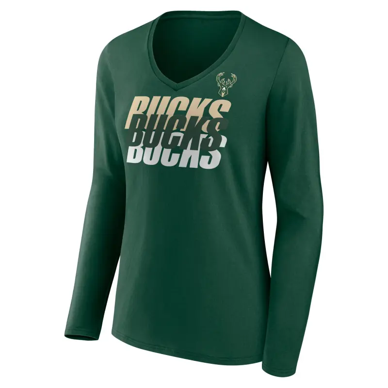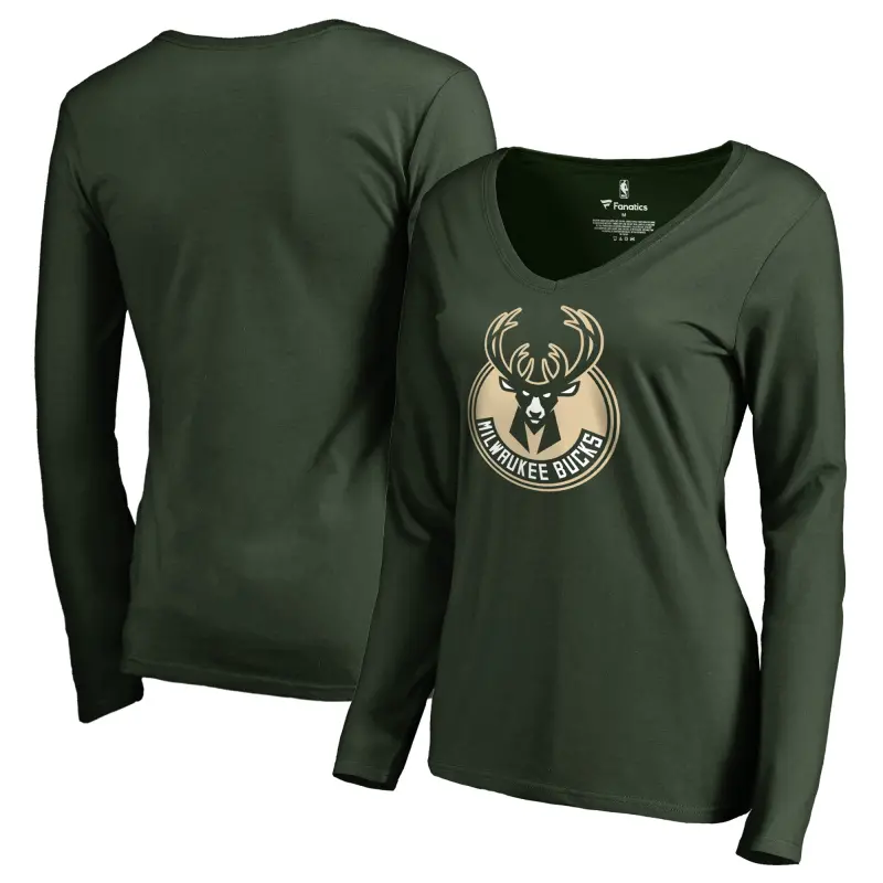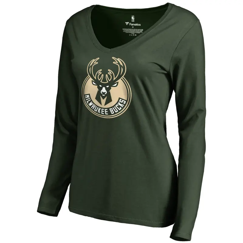 Women’s Milwaukee Bucks Green Primary Logo V-Neck Long Sleeve T-Shirt