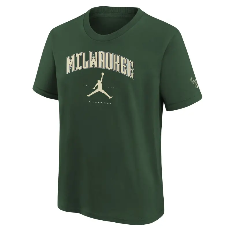 Youth Milwaukee Bucks Jordan Brand Hunter Green Essential Cities T-Shirt