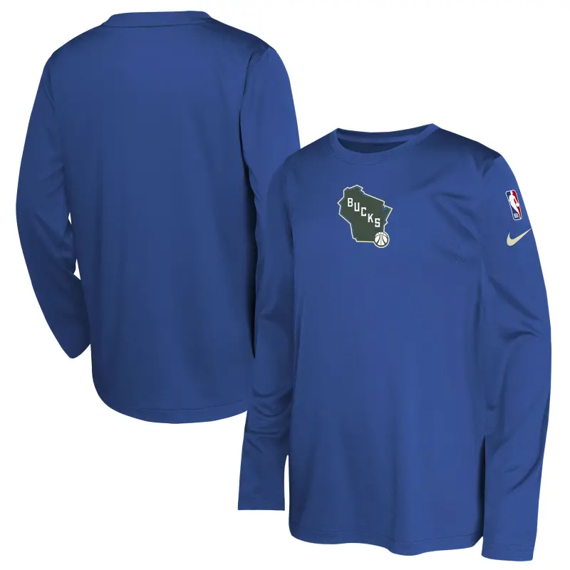 Youth Milwaukee Bucks Nike Royal 2024/25 City Edition Pregame Performance Long Sleeve Shooting T-Shirt