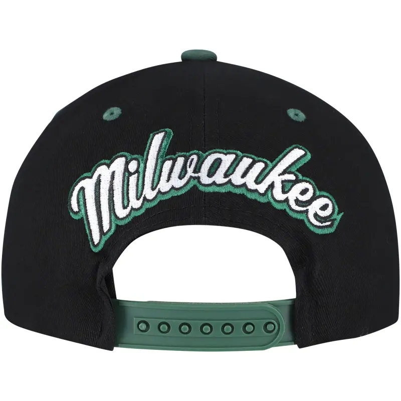 Men’s Milwaukee Bucks Mitchell & Ness Black/Hunter Green Backside Script Two-Tone Pro Crown Adjustable Hat