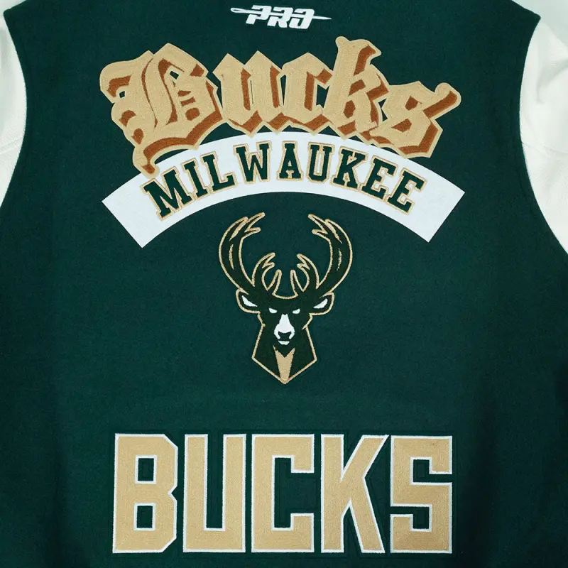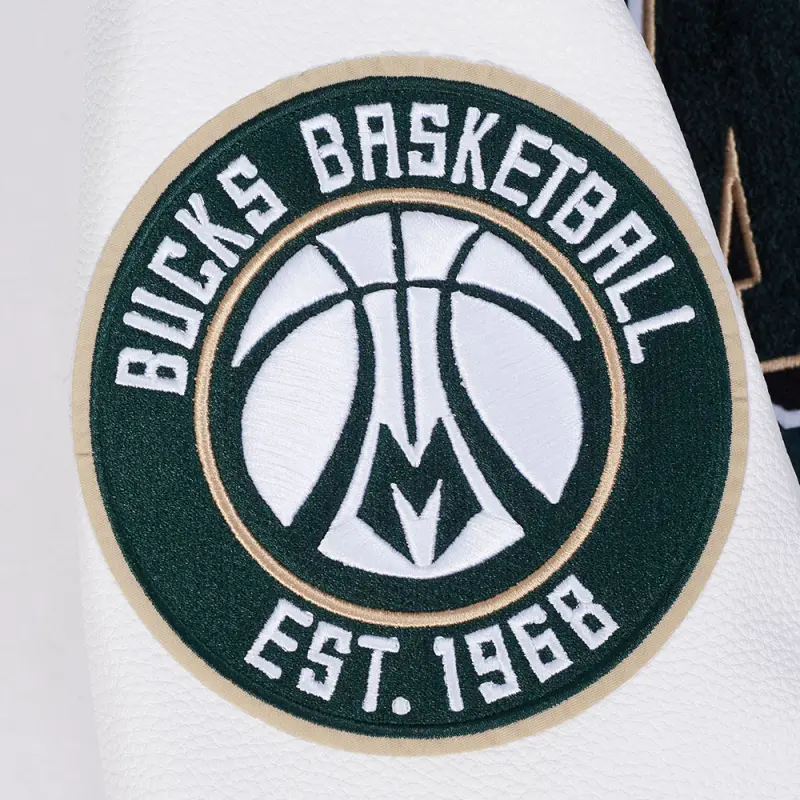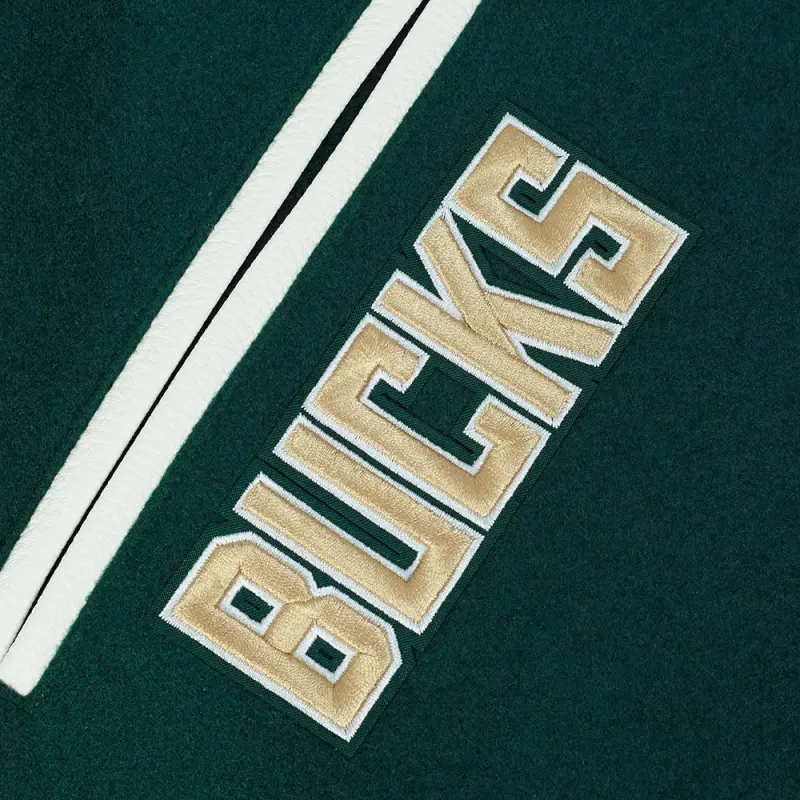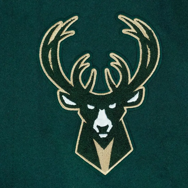NBA MILWAUKEE BUCKS BEST OF MEN’S RIB WOOL VARSITY JACKET (FOREST GREEN\/WHITE)