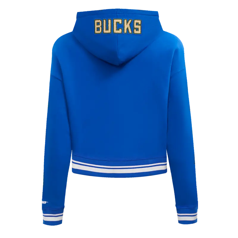 NBA MILWAUKEE BUCKS CITY EDITION 24-25 WOMEN’S RIB FLEECE CROPPED PULLOVER HOODIE (ROYAL BLUE)