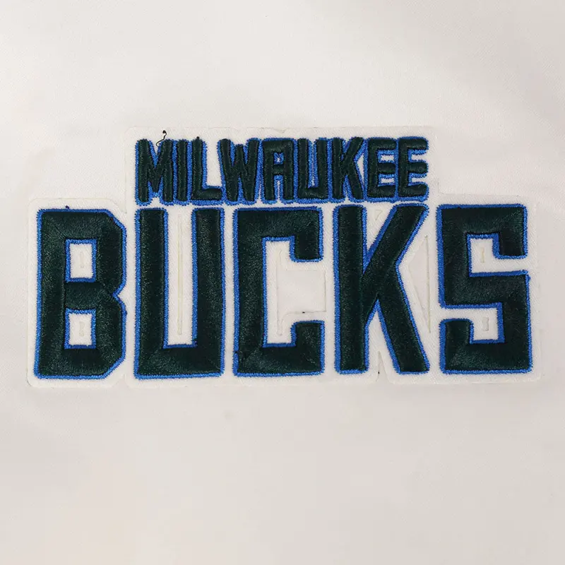 NBA MILWAUKEE BUCKS CITY EDITION 25-26 MEN’S PRO SATIN YD RIB JACKET (EGGSHELL\/ ROYAL BLUE)