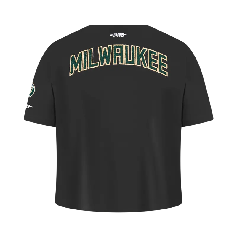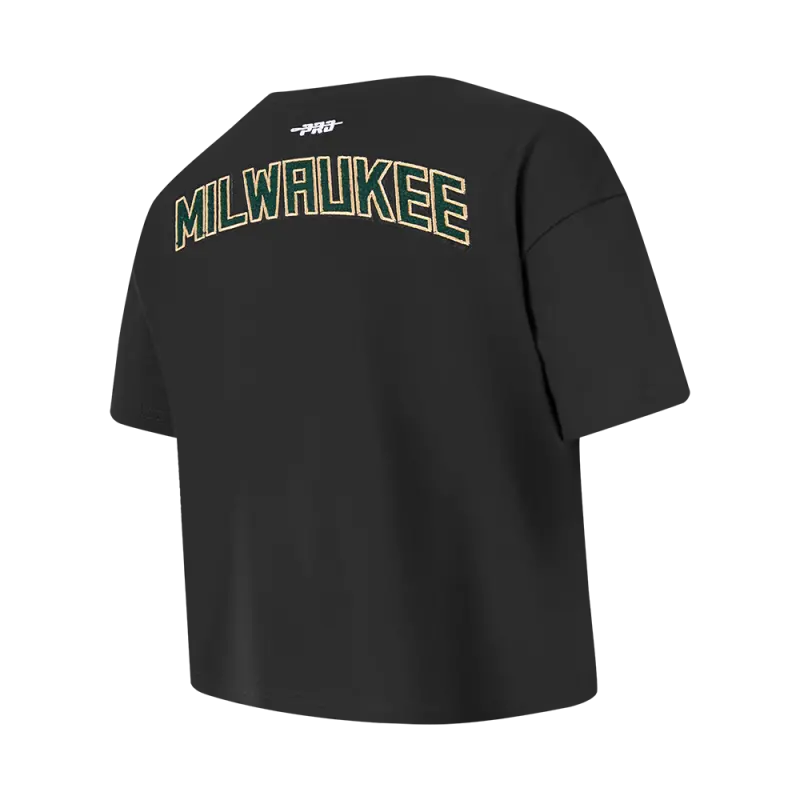 NBA MILWAUKEE BUCKS CLASSIC BIG GIRLS SHORT SLEEVE BOXY TEE (BLACK)