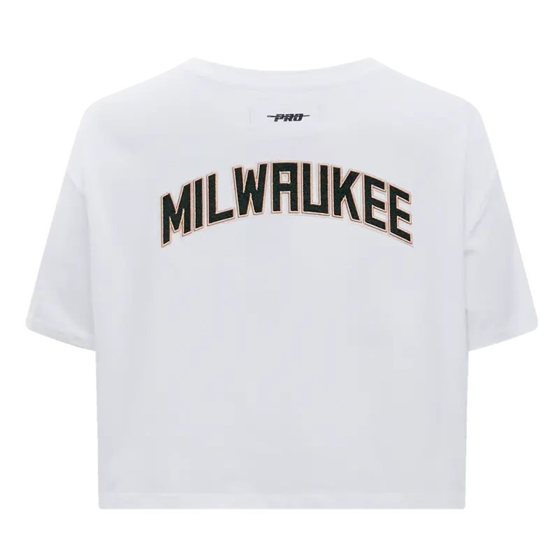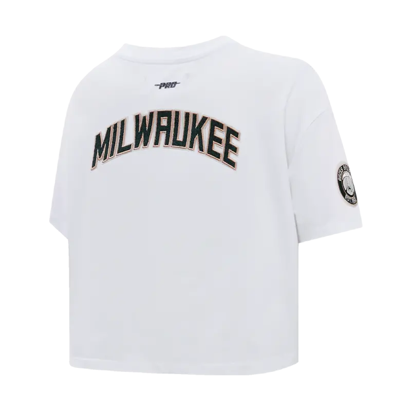 NBA MILWAUKEE BUCKS CLASSIC WOMEN’S BOXY TEE (WHITE)