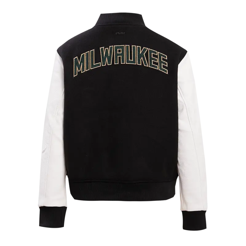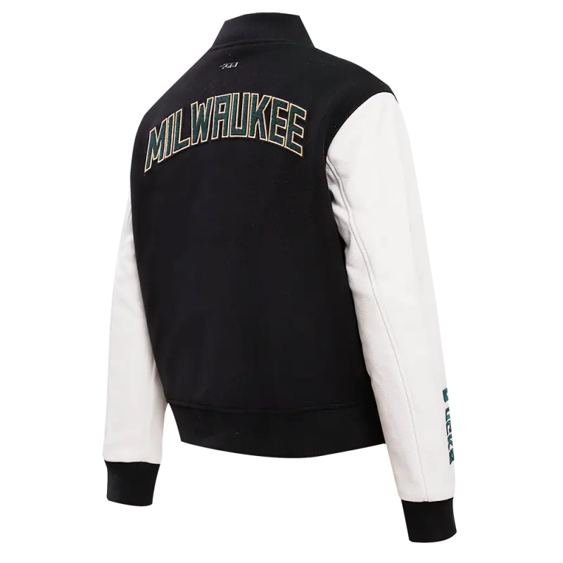 NBA MILWAUKEE BUCKS CLASSIC WOOL WOMEN’S VARSITY JACKET (BLACK\/WHITE)