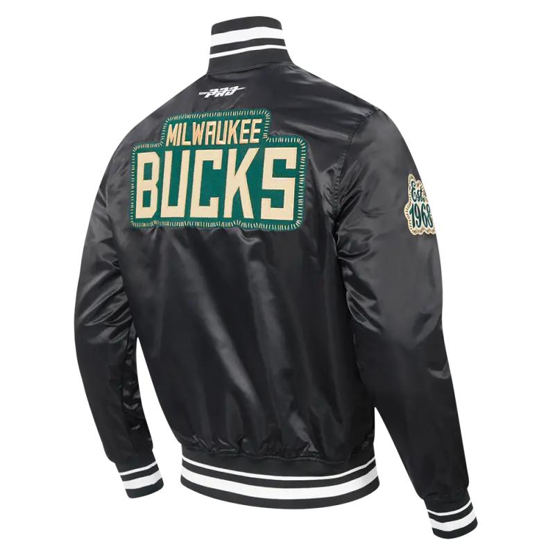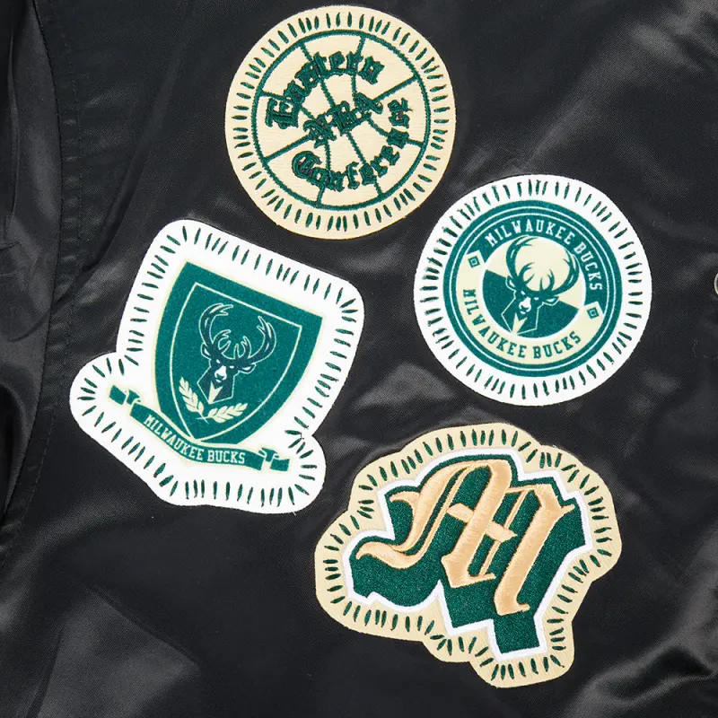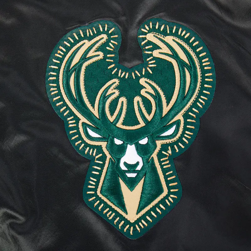 NBA MILWAUKEE BUCKS DIY PICK STITCH MEN’S RIB SATIN JACKET (BLACK)