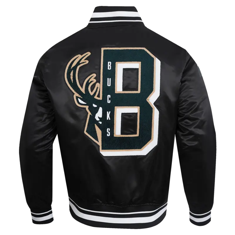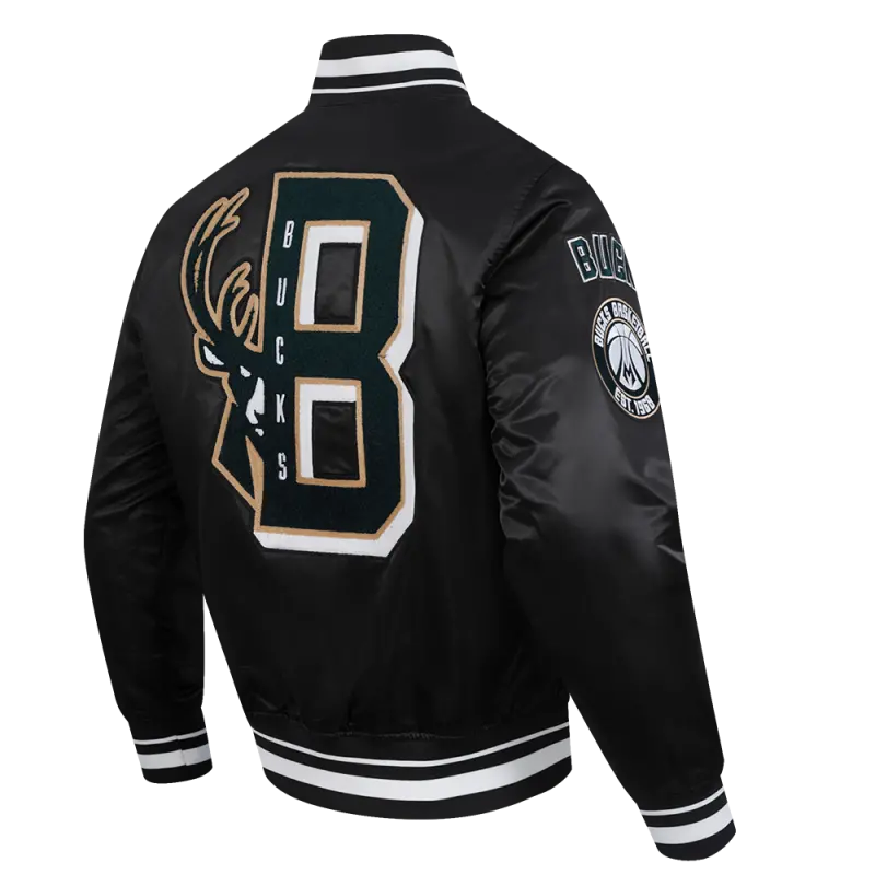 NBA MILWAUKEE BUCKS MASHUP MEN’S RIB SATIN JACKET (BLACK)
