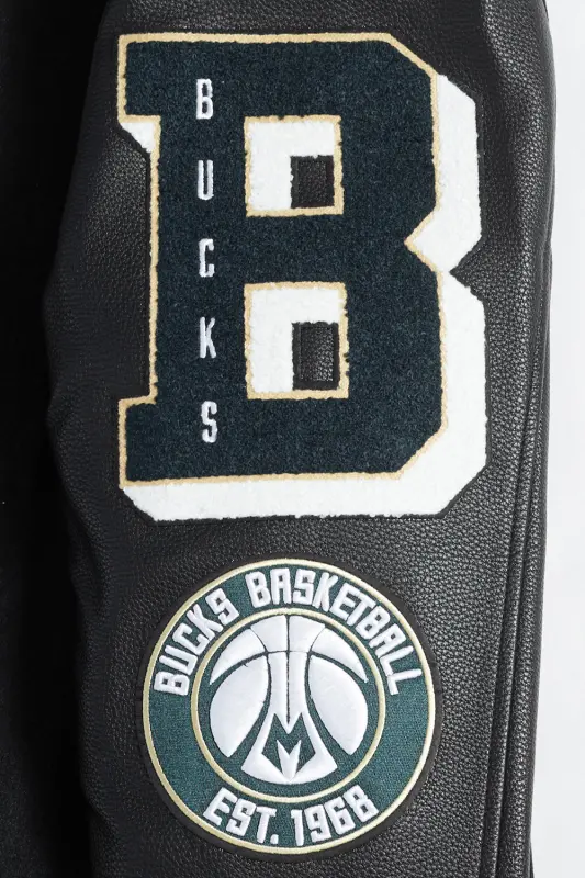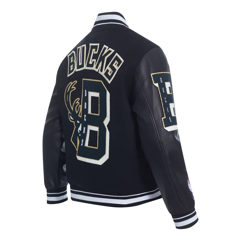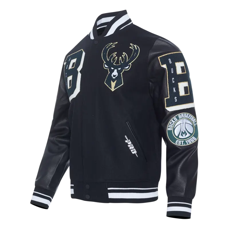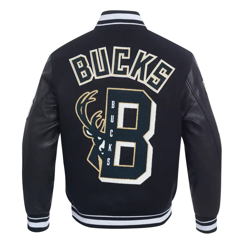 NBA MILWAUKEE BUCKS MASHUP MEN’S RIB WOOL VARSITY JACKET (BLACK)