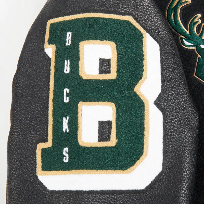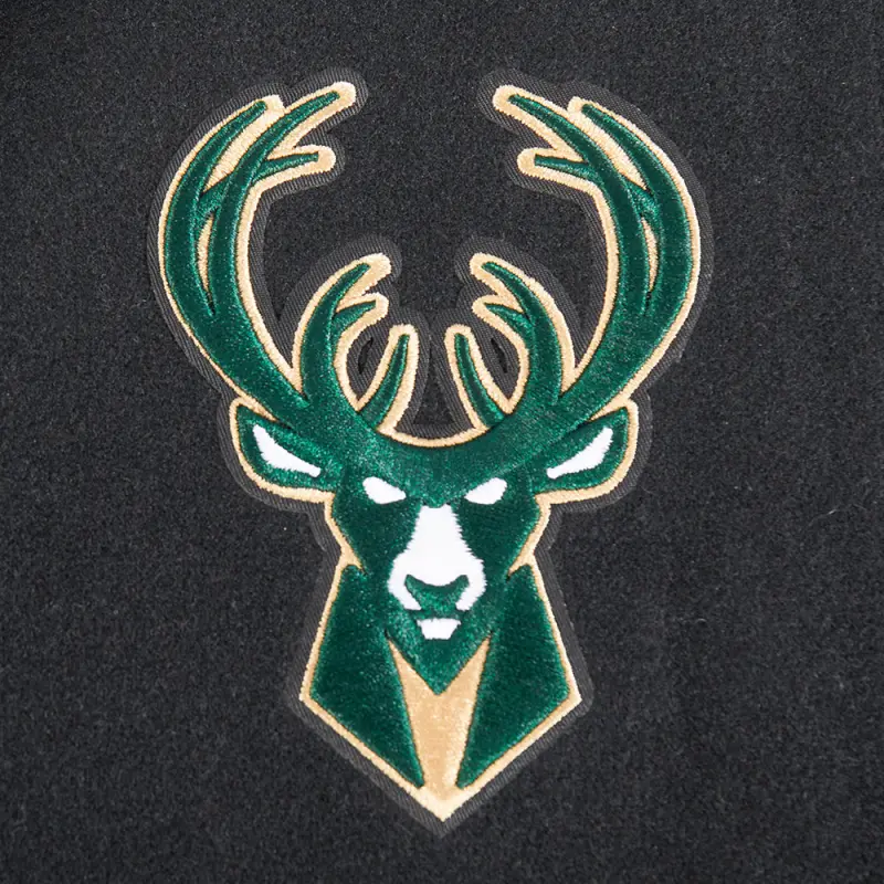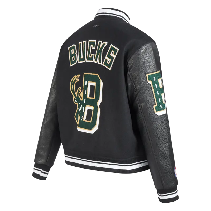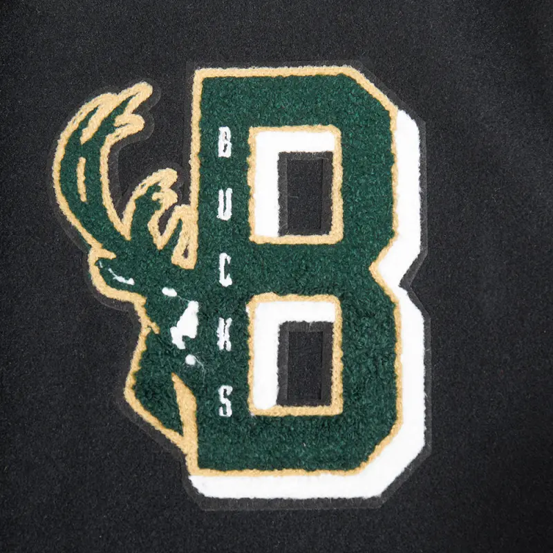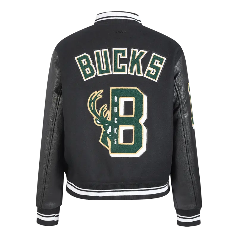 NBA MILWAUKEE BUCKS MASHUP WOMEN’S RIB WOOL VARSITY JACKET (BLACK)