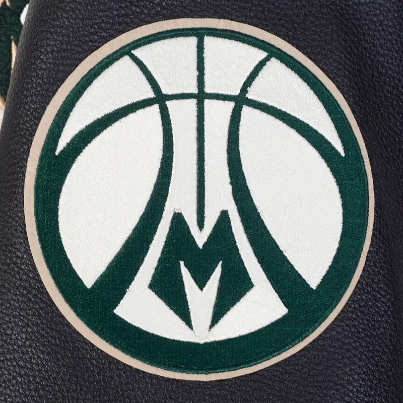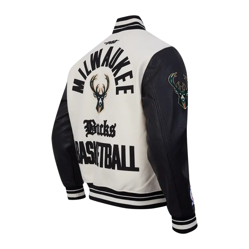 NBA MILWAUKEE BUCKS MODERN ORIGINALS MEN’S RIB WOOL VARSITY JACKET (EGGSHELL\/ BLACK)