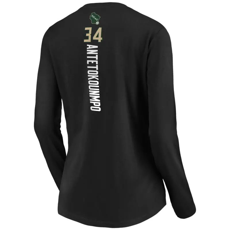 Home / Shop / Milwaukee Bucks / Women’s Milwaukee Bucks Giannis Antetokounmpo Black Playmaker Name & Number Long Sleeve V-Neck T-Shirt